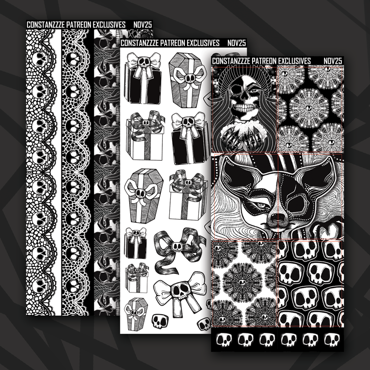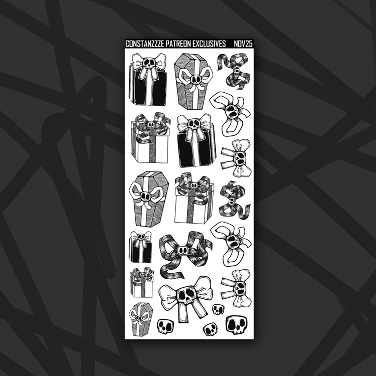 This listing is for 1 bundle of Skull Witch Winter Higher Sheet Sticker Sheets! This bundle includes three sticker sheets. All art is hand drawn by me with love :) All Patrons at a $25+ tier for NOV 2025 will get at least one set of these in their rewards.