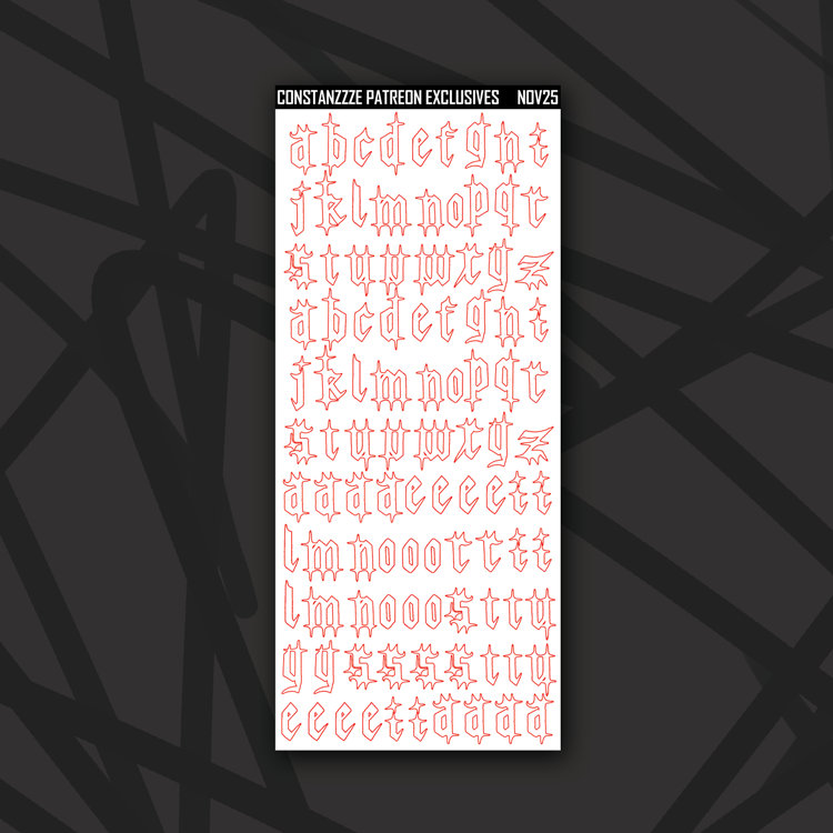 *Letter outlines show cut lines, all letters are solid white*